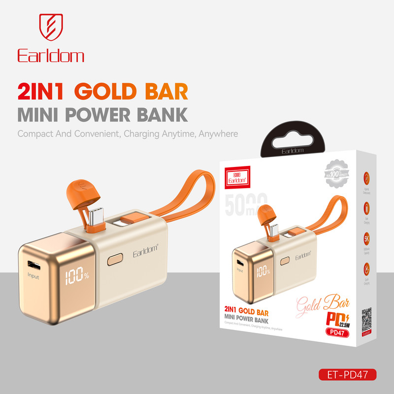 پاوربانک ارلدام مدل 2IN1 PD47 22.5W ظرفیت 5000 میلی آمپر ساعت