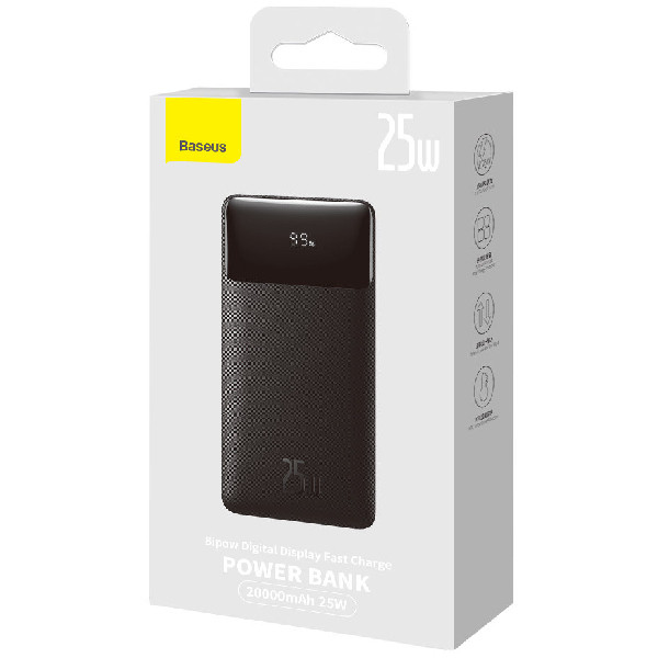 دارای ظرفیت بالای 20000 میلی آمپر با قابلیت شارژ همزمان سه دستگاه با سرعت فوق العاده توسط تکنولوژیهای شارژ سریعPD ،QC ،FCP،AFC و غیره، مجهز به دو عدد پورت خروجی USB با حداکثر توام خروجی 18 وات و یک پورت دو طرفه Type-C با حداکثر توان PD 25W، شارژ ایمن برای جلوگیری از ولتاژ و جریان اضافه، حفاظت از اتصال کوتاه، شارژ زیاد و داغ شدن دستگاه، مجهز به چیپست هوشمندجهت تشخیص جریان ورودی دستگاه برای ارائه شارژ ایمن و متناسب با آن، این کار باعث میشود به دستگاه شما آسیبی وارد نشود و از ورود نوسانات به آن جلوگیری کرده و عمر باتری افزایش پیدا کند. بهرهمندی از تکنولوژی NTC با قابلیت Trickle، در این فناوری، سنسورهای مختلفی استفاده شده که میتواند دما و حرارت دستگاه را بسنجد و سپس با توجه به آن میزان شارژدهی را کنترل کند؛ اگر در حالت فست شارژ سنسورها دمایی غیر طبیعی را تشخیص دهند؛ حالت Trickle فعال میشود که در آن شدت جریان و سرعت کنترل شده تا دما به تدریج متناسب شود و کاهش یابد. مجهز به نشانگر LED دیجیتالی در درون یک پوشش آینهای مشکی جهت نمایش میزان شارژ باقیمانده پاوربانک، دارای کابل دو سر Type-C فست شارژ با توان خروجی 60 وات (20V/3A) و به طول 50 سانتیمتر موجود در بسته بندی محصول است.