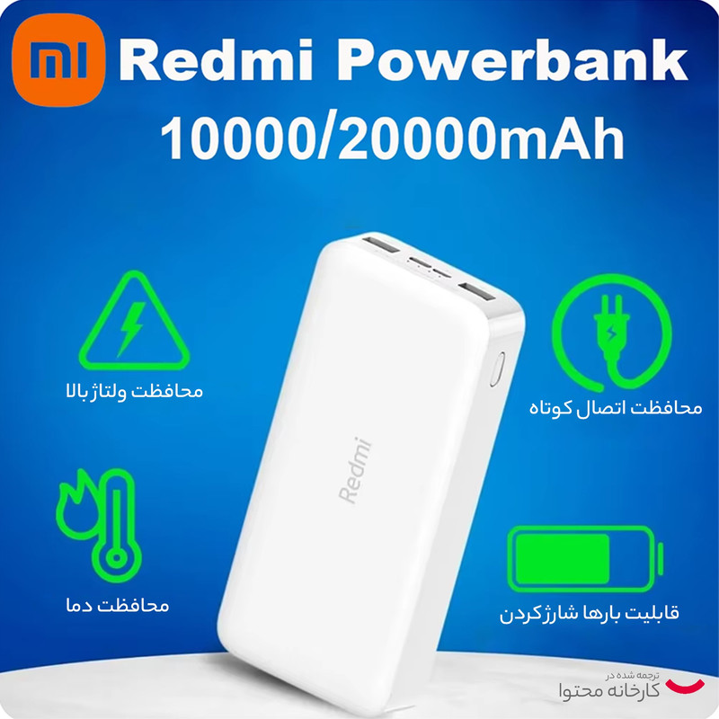 + موارد بیشترپاور بانک 20000 Redmi مدل PB200LZM ساخت شرکت شیائومی (xiaomi) است. این پاور بانک یک وسیله جانبی پرکاربرد است که نگرانی تمام شدن باتری گوشیهای هوشمند را از بین برده است. این دستگاه توانایی 4.8 مرتبه شارژ Iphone XS را دارد. Redmi 20000 با داشتن دوپورت خروجی USB و پشتیبانی از انواع پروتکلهای شارژ سریع، بهترین همراه شما در خارج از منزل، محل کار و یا هنگام سفر خواهد بود. این محصول با استفاده از سیستم شارژ هوشمند به راحتی میتواند به طور همزمان دو دیوایس شما را شارژ کند، شارژ هوشمند ورودی مناسب را برای هر دیوایس در نظر خواهد گرفت. این محصول با ابعاد 7 × 15 سانتیمتر سبک، راحت و قابلحمل است و به راحتی میتوانید انواع دیوایسهای خود مانند گوشیهای هوشمند، دوربین، تبلت و غیره را در طول روز شارژ کنید. پاور بانک همراه شیائومی دارای سیستم محافظت در برابر مشکلاتی مانند نوسانات برق، اتصال کوتاه، تغییرات دما، اضافه جریان در ورودی و خروجی و غیره است. این پاور بانک از پورت خروجی دوگانه USB_A و پورت ورودی دوگانه USB-C و MicroUSB برخوردار است. همچنین حداکثر میزان قدرت برای پورت ورودی 5V _2.1A و پورت خروجی آن 5.1V_3.6A است. این دستگاه دارای دو درگاه ورودی MicroUSB - TypeC برای شارژ است و قابلیت سازگاری با تمامی گجت های هوشمند شما را دارد. در مجموع این پاور بانک با توانایی چندین بار شارژ گوشیهای هوشمند، میتواند یک انتخاب مناسب برای استفاده روزمره باشد.