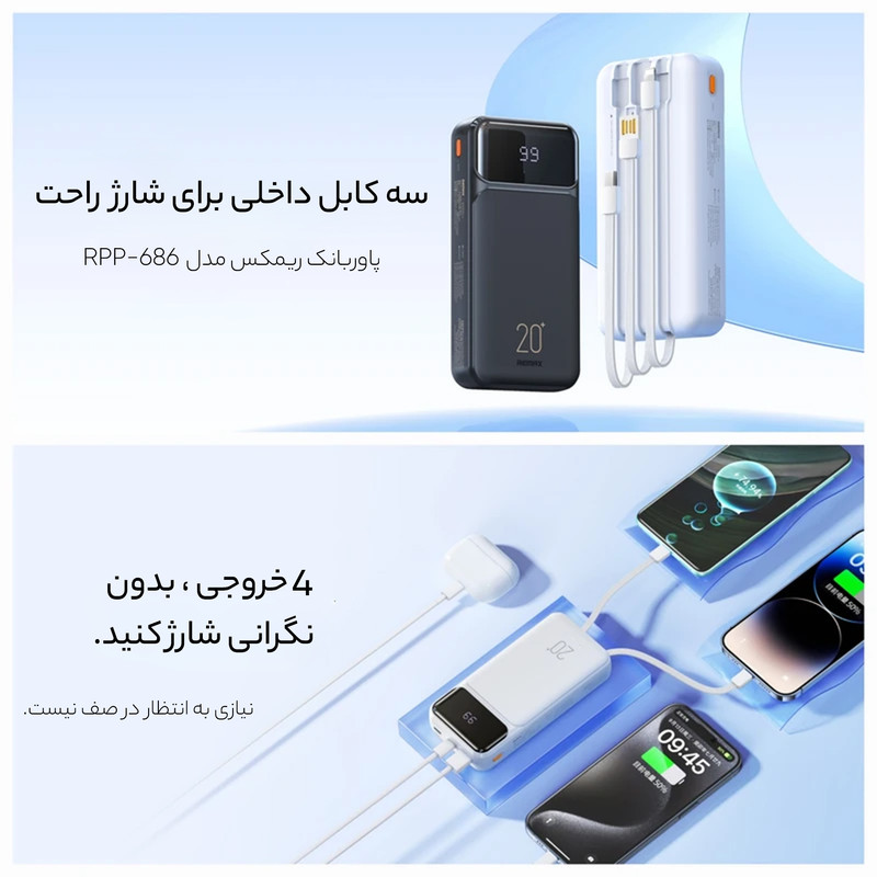 پاوربانک ریمکس مدل RPP-686 ظرفیت 20000 میلی آمپر ساعت