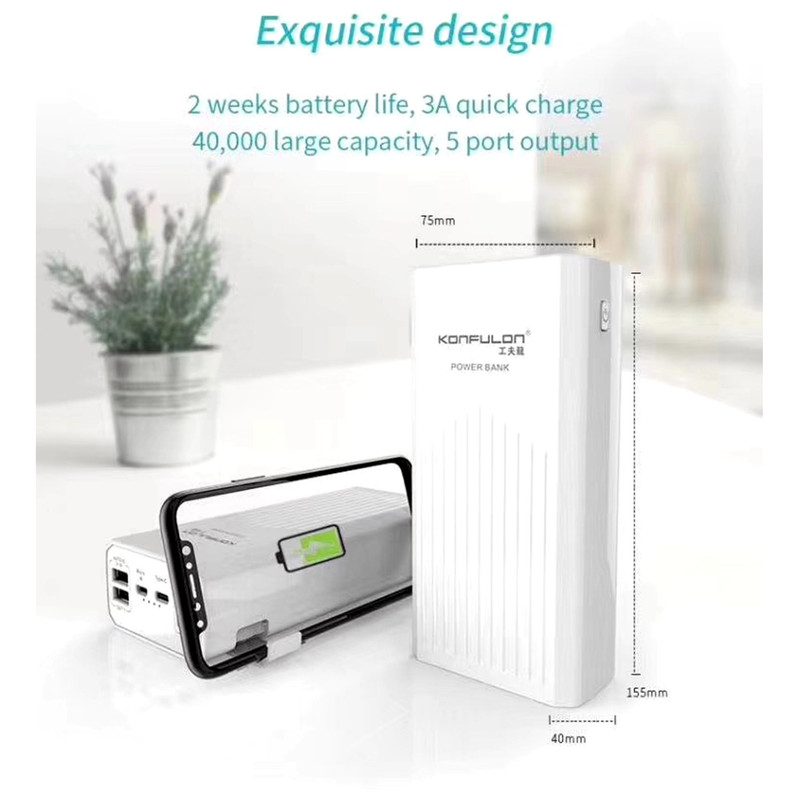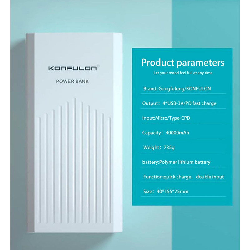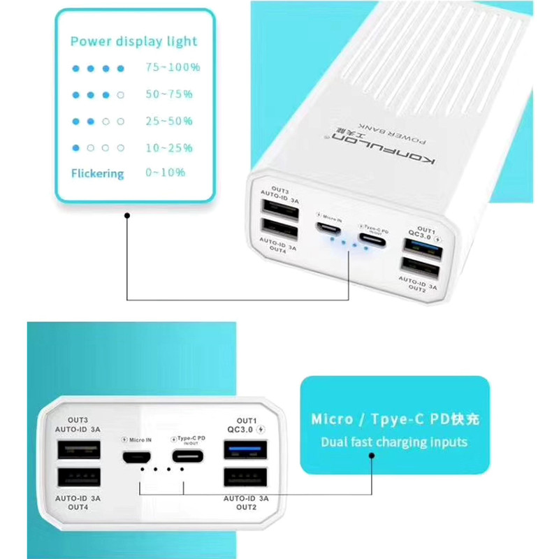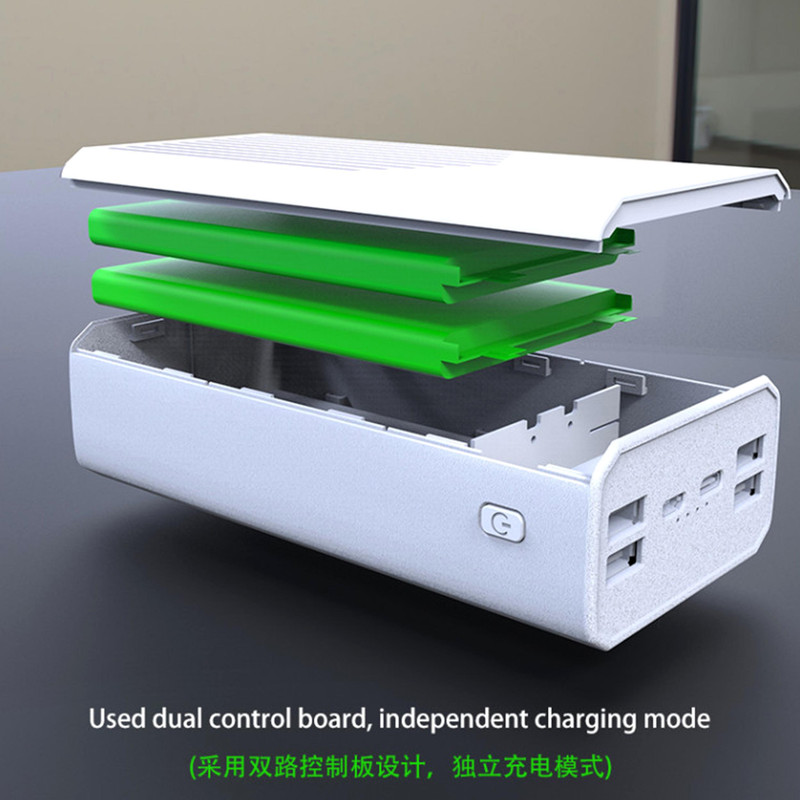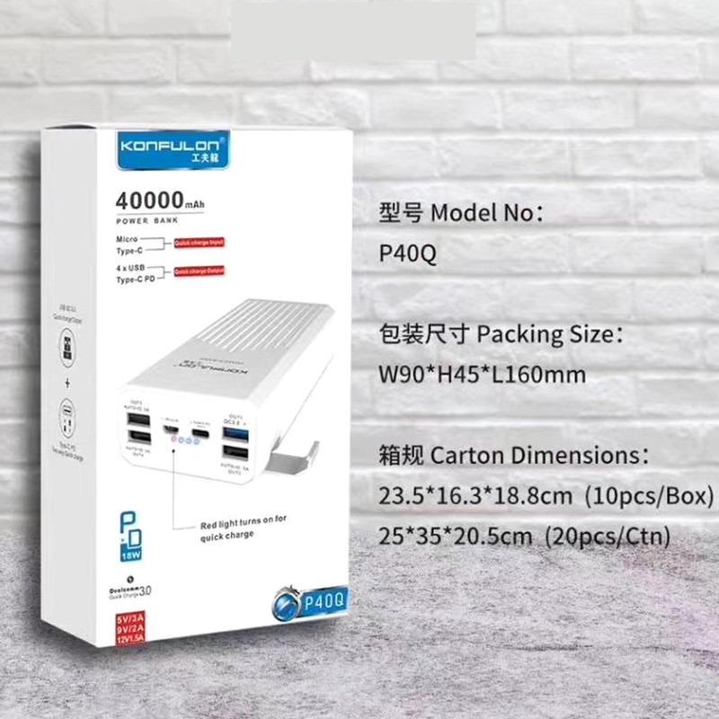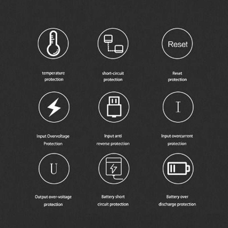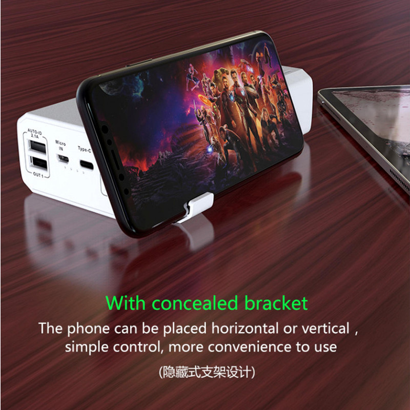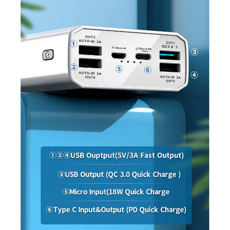 مشخصات فنیدارای دو درگاه ورودی با پورت های microUSB ، USB-C ورودی 1: micro DC 5V/2A ورودی 2: USB-C DC 5V/2A ورودی 1 + ورودی 2: DC 5V/4A دارای 4 درگاه خروجی مجموع خروجی درگاه ها: 5V/4.2A دارای یک کابل شارژ microUSB دارای یک لبه ی نگهدارنده برای گوشی موبایل