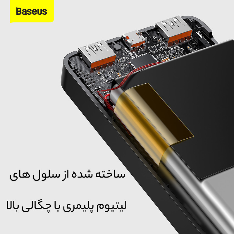 پاوربانک 10000 میلی آمپر ساعتی بیسوس دارای دو پورت ورودی نیز بوده که شامل پورتهای میکرو یو اس بی و تایپ سی میشود و باعث شده تا بتوانید به راحتی با این کابلها این پاوربانک را شارژ کنید. ولتاژ و شدت جریان ورودی هر کدام از این درگاهها متفاوت هستند و به این قرار است: حداکثر ولتاژ و شدت جریان ورودی درگاه میکرو یو اس بی: 5V~2A / 9V~2A و حداکثر ولتاژ و شدت جریان ورودی درگاه تایپ سی نیز برابر با 5V~3A / 9V~2A است.