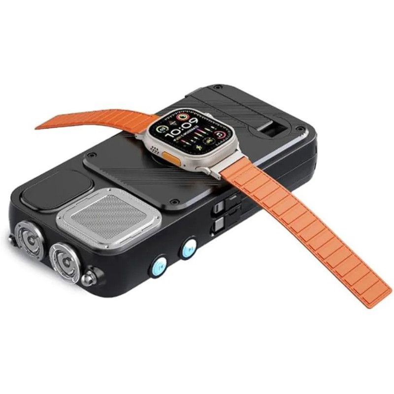 این پاوربانک تنها یک شارژر نیست؛ بلکه به عنوان چراغ قوه ، اسپیکر با توان 3 وات و FM پلیر نیز عمل میکند. نمایشگر دیجیتال آن اطلاعات دقیقی از میزان شارژ باقیمانده و وضعیت دستگاه ارائه میدهد. ورودی USB-C با توان 18 وات و خروجیهای متنوع شامل USB-C ، لایتنینگ و USB-A ، شارژ سریع و کارآمد را فراهم میکنند.
