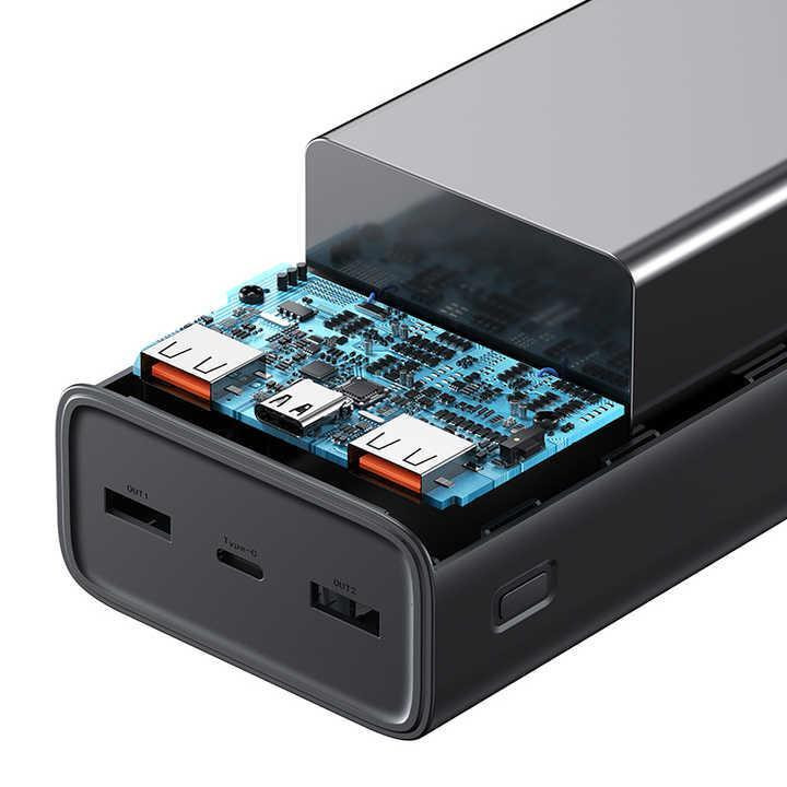 پاوربانک 30000 میلی آمپر 65 وات یوسمز مدل CD185 دارای 3 پورت خروجی می باشد که از دو پورت USB ، یک پورت تایپ سی (usb-c) تشکیل شده است که می توانید سه دستگاه را به صورت همزمان شارژ کنید.
