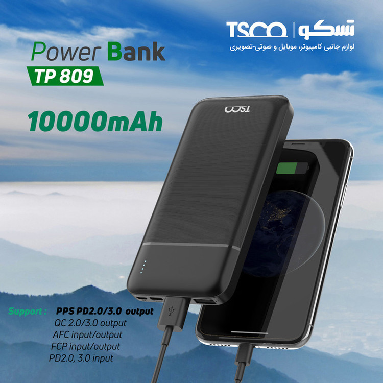پاور بانک تسکو مدل TP 809 با ظرفیت 10000 میلی آمپر ساعت