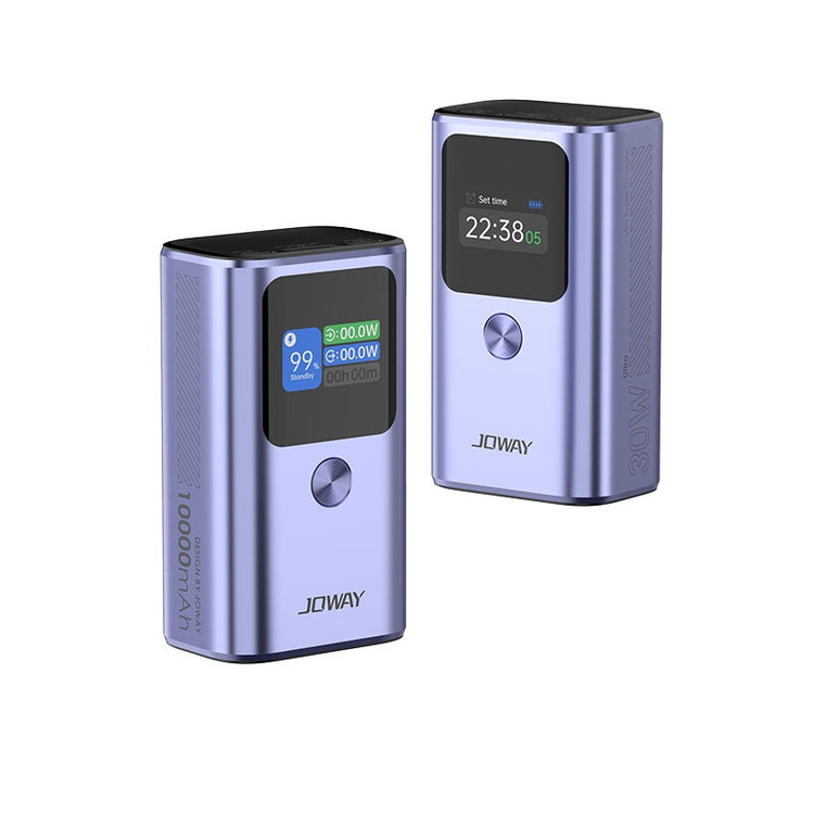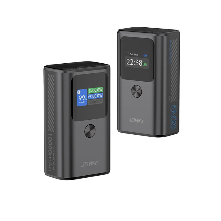 نمایشگر بزرگ TFT رنگی روی دستگاه، اطلاعات کاملی مانند درصد شارژ، ساعت، دما و وضعیت عملکرد پاوربانک را نمایش میدهد. این نمایشگر همچنین قابلیت تنظیم ساعت، آلارم و استفاده به عنوان کرنومتر را دارد. یکی دیگر از ویژگیهای خاص این مدل، دماسنج داخلی برای نمایش دمای محیط است.