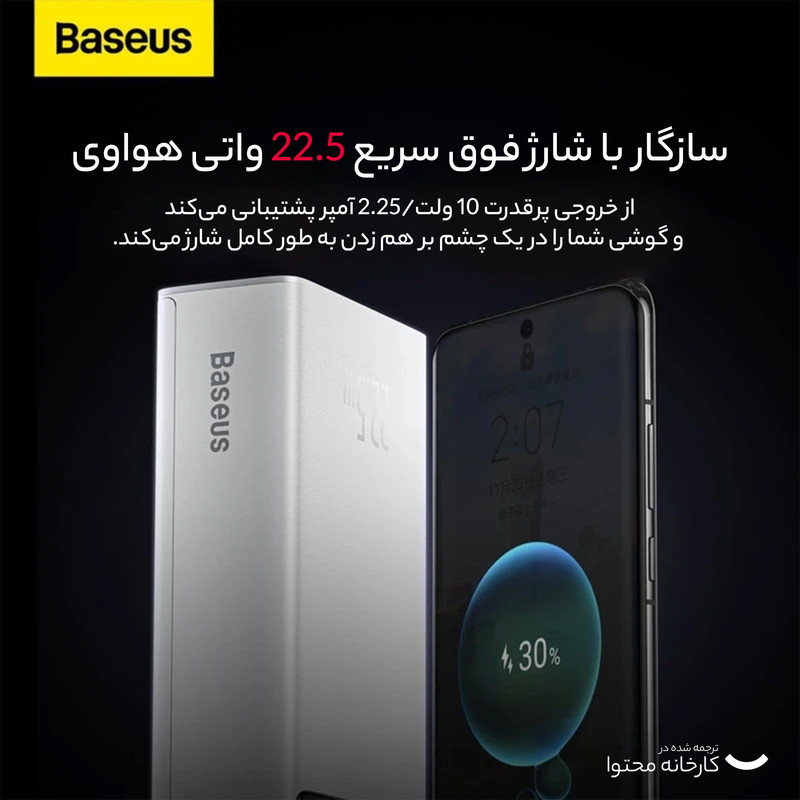 پاور بانک بیسوس مدل PPXJ30 ظرفیت 30000 میلی آمپر ساعت