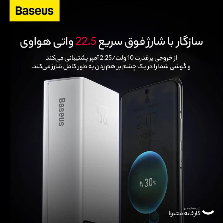 پاوربانک Baseus با ظرفیت 30000 میلیآمپر ساعت برای تامین 5.6 شارژ کامل برای آیفون 14 پرو و حداکثر 4 شارژ کامل برای گلکسی اس 22 از 0 تا 100 درصد باتری کافی است. آیا می خواهید در حالی که باتری گوشی شما تمام شده است از یک بازی با دوستان خود لذت ببرید؟ از بسته باتری 30000 میلی آمپر ساعتی Baseus برای منبع تغذیه می توان استفاده کرد . این پاوربانک با پروتکل های شارژ متعدد از جمله PD، QC، AFC و SCP سازگار ساخته شده است که امکان شارژ سریع تقریباً تمام EDC های شما را فراهم می کند . 4 پورت داده شده است که در آن 2xUSB-A و 1xUSB-C برای شارژ همزمان چندین دستگاه، به عنوان مثال، یک گوشی هوشمند، جعبه شارژ هدفون و یک چراغ USB در نظر گرفته شده است. علاوه بر درصد باتری، نمایشگر وضعیت به وضوح نشان می دهد که آیا شارژ سریع در حال انجام است یا نماد رعد و برق نارنجی را نشان نمی دهد. پورت های USB-C و Micro USB از ورودی برق پشتیبانی می کنند که به شما امکان می دهد پاوربانک را حدود 9 تا 10 ساعت شارژ کنید. بیسوس از تولید کنندگان محصولات جانبی دیجیتال در سراسر جهان می باشد . با توجه به افزایش روز افزون افراد به کالاهای دیجیتال ، این برند گامی مؤثر در عرضه این مدل محصولات برداشته و با کیفیت هر چه تمام تر در جهت رشد و توسعه برنامه های خود برای تولید لوازم جانبی دیجیتال حرکت می کند .