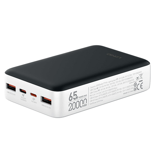 مشخصات فنی : ظرفیت بالا پاوربانک 20000 الدنیو می تواند بیش از یک مرتبه گوشی شما را شارژ کند. شارژ همزمان سه دستگاه (دارای دو پورت خروجی USB و یک پورت تایپ سی است.) هم از طریق پورت لایتنینگ و هم پورت تایپ سی با حداکثر توان 24 وات شارژ کنید. نشانگر دیجیتالی میزان شارژ