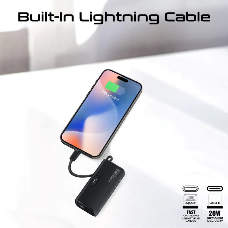 مشخصات فنی : کابل لایتنینگ داخلی با توان 18 وات پورت USB-C PD 20 وات با توان ورودی/خروجی 20 وات کانکتور تاشو USB-C با توان 20 وات