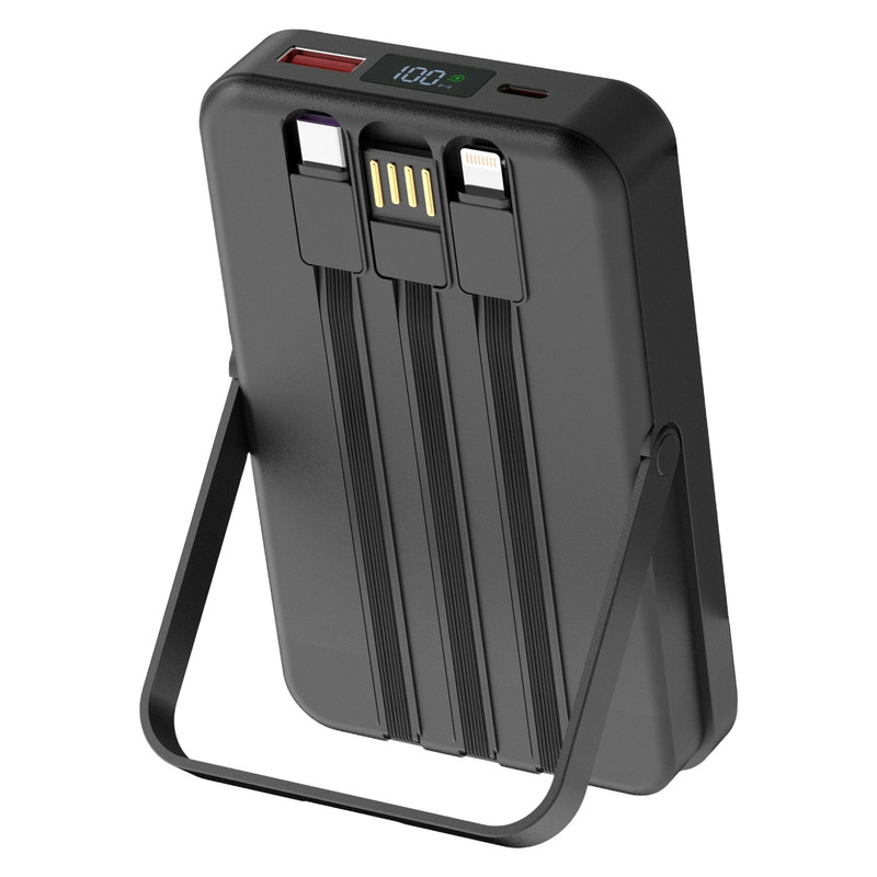 امکانات و قابلیتهادارای 5 خروجی ( دوخروجی دارای کابل فست شارژ / یک خروجی وایرلس شارژ فست شارژ / دو خروجی TYPE-C , USB فست شارژ )
