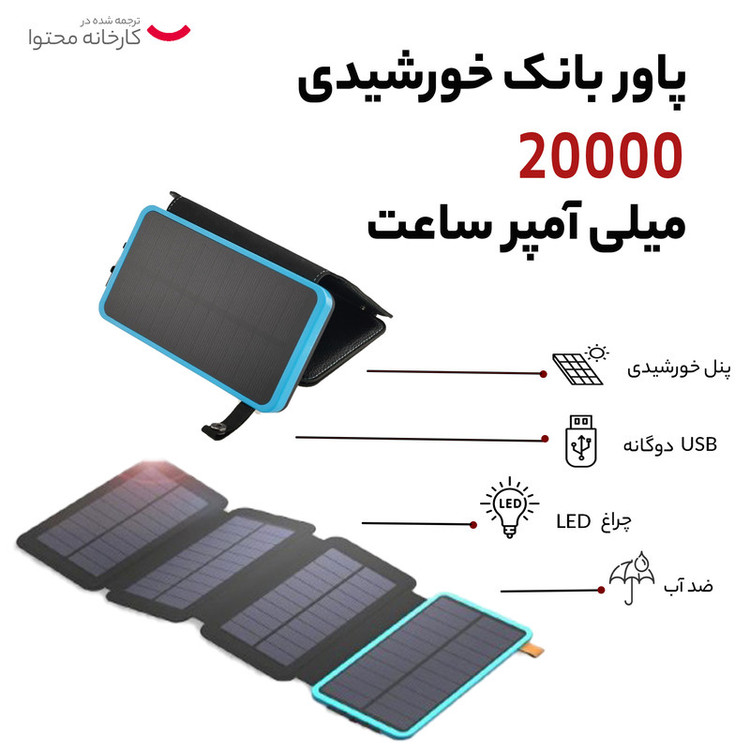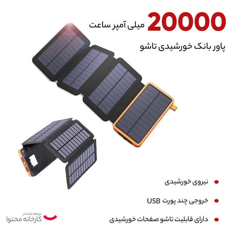 شارژ همراه خورشیدی مدل Solar4Fold ظرفیت 20000 میلی آمپر ساعت