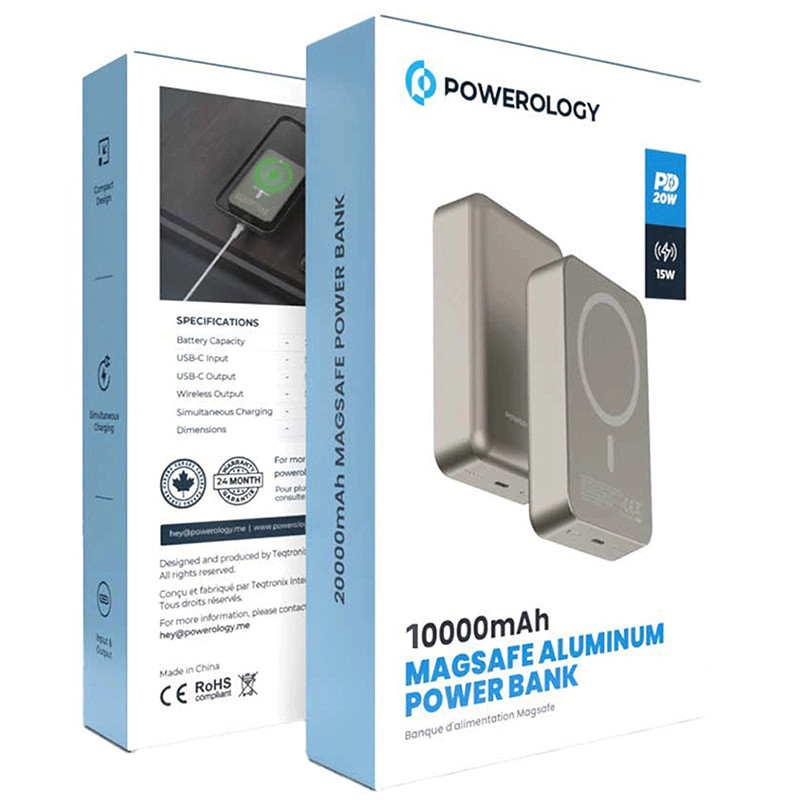 پاوربانک پاورولوژی مدل MAGSAFE ALUMINUN با ظرفیت 10هزار میلی آمپر ساعت یکی از گزینه های شیک و کارآمد برای شارژ دستگاه های مجهز به تکنولوژی MAGSAFE است.