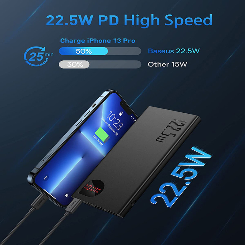 باتری پاوربانک بیسوس از نوع لیتیوم پلیمر بوده و دارای ظرفیت اسمی 20000 میلی آمپر است اما بازدهی واقعی آن 12000mAh (5V/6A) میباشد. توانی برابر با 65 وات داشته و از انواع فناوریهای شارژ سریع از جمله QC ، PD و SCP پشتیبانی میکند و در مقایسه با سایر هم نوعان خود 5 برابر سریعتر عمل کرده و قادر به شارژ کامل باتری مک بوک در مدت زمان 2 ساعت خواهد بود.