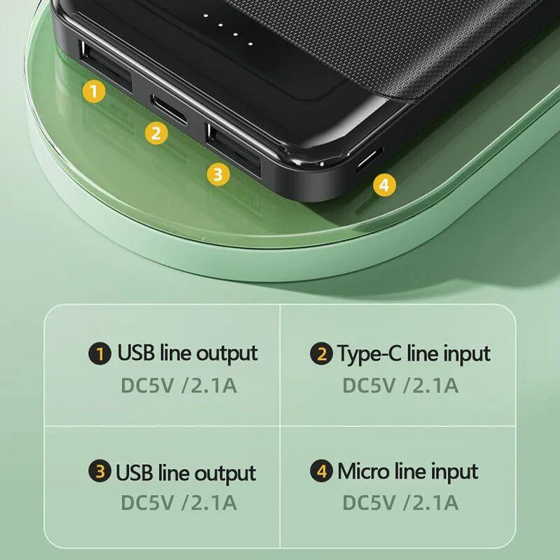 از نظر خارجی، دستگاه شبیه یک جعبه کوچک ساخته شده از پلاستیک بادوام است. در داخل یک باتری بزرگ وجود دارد که ظرفیت آن 10000 میلی آمپر ساعت است. این برای دو یا سه شارژ کامل یک تلفن همراه کاملاً کافی است.