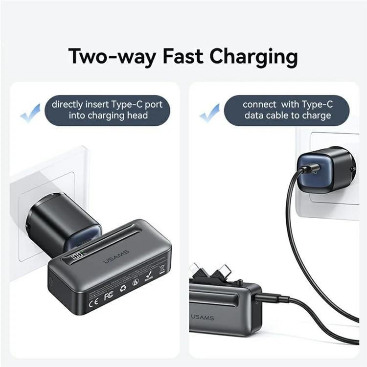 پاوربانک USAMS CD233 با اکثر گوشیهای هوشمند (از جمله آیفون، سامسونگ، شیائومی)، تبلتها، ساعتهای هوشمند و سایر گجتهای USB-C و Lightning سازگار است.