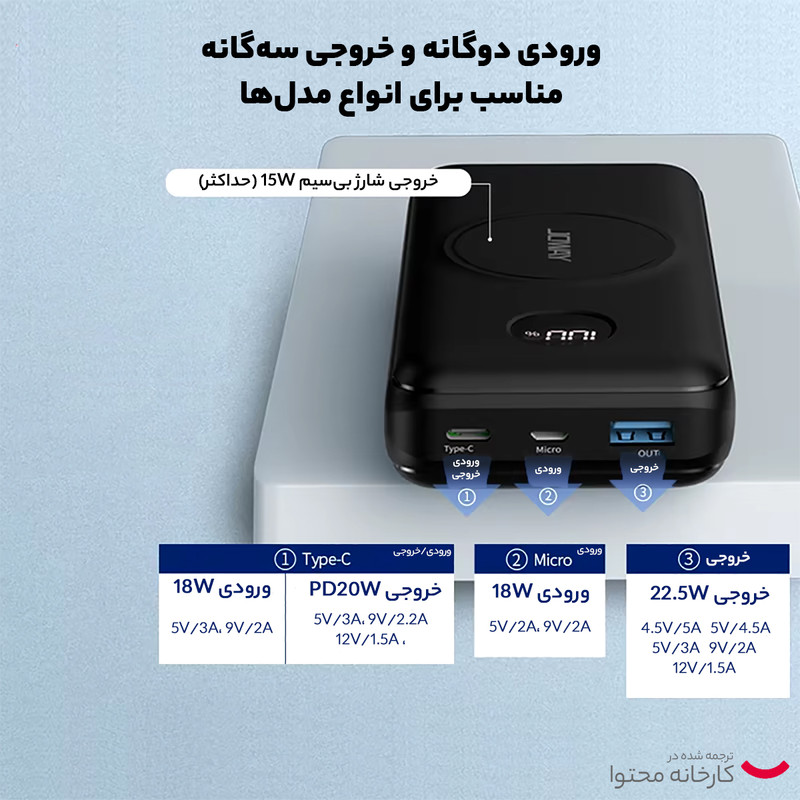 مشخصات فنی : 20w , 18w ,22.5w , 15w wireless