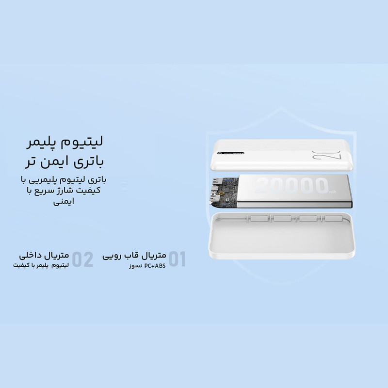 + موارد بیشترطراحی ساده، اندازه کوچک و ظریف این سری از پاوربانکهای ریمکس از ویژگیهای قابلتوجه آن به شمار میآید. جنس بدنه به صورتی طراحی شده که ترکیبی از پلاستیک فشرده و پلیکربنات نسوز (ABC+PC) با ضخامت کم باشد. این ویژگی باعث شده وزن پاوربانک سبک و بهراحتی قابلحمل باشد. همچنین پاور بانک حاوی 4 عدد چراغ LED در قسمت پورت محصول است که میزان شارژ هر پورت را نمایش میدهد. پورتها همگی در یک قسمت پاور بانک و در کنار هم قرار گرفتهاند.