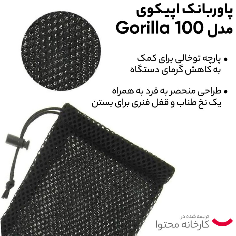 پاوربانک اپیکوی مدل Gorilla100 ظرفیت 10000 میلی آمپر ساعت به همراه کیف