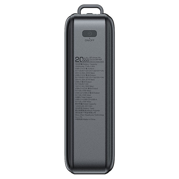 پاوربانک ACEFAST M4 دارای دو خروجی USB-C و یک خروجی USB-A است. درگاههای USB-C توان خروجی تا 67 وات و USB-A تا 18 وات را ارائه میدهند که امکان شارژ همزمان چند دستگاه با سرعت بالا را فراهم میکنند. نمایشگر LED دقیق، سطح باتری باقیمانده را بهصورت لحظهای نمایش میدهد تا همیشه از وضعیت شارژ پاوربانک مطلع باشید.