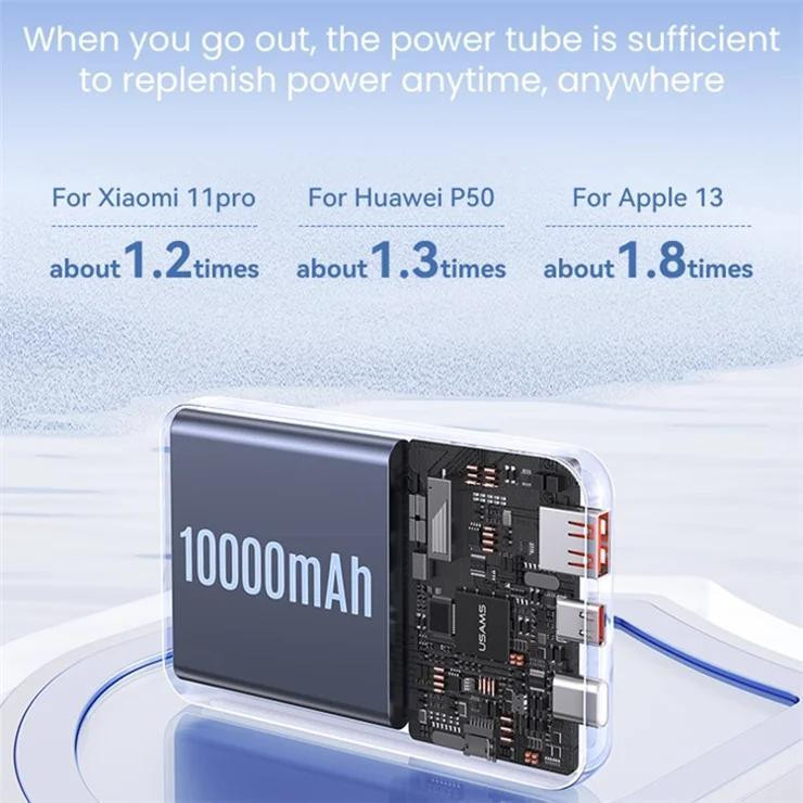 پاور بانک بی سیم یوسمز مدل US-CD214 را می توان یکی از با کیفیت ترین و ارزان ترین پاوربانک های مگنتی بازار بحساب آورد. پاورنک یوسمز مدل CD214 به صورت بی سیم و مگنتی و با ظرفیت 10000 میلی آمپر ساعت و توان خروجی 20 وات می باشد .این پاور بانک مگنتیک به شما امکان می دهد که گوشی هوشمند، تبلت ها و سایر دستگاه های دیجیتال را به صورت با سیم با توان 20 وات و به صورت بی سیم با توان 15 وات شارژ کنید. نمایشگر دیجیتالی برای نشان دادن وضعیت باطری هست .پورت این پاور بانک ازنوع یو اس بی و تایپ سی است .