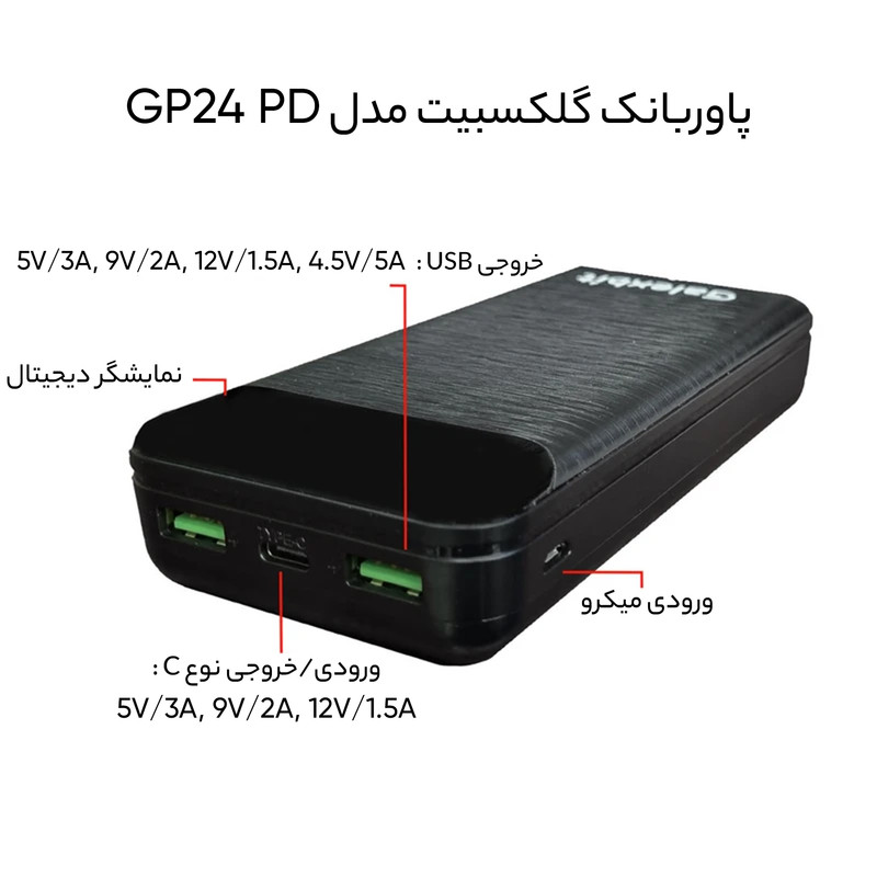 پاوربانک گلکسبیت مدل GP24 PD ظرفیت 20000 میلی آمپر ساعت