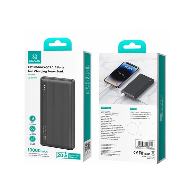 مشخصات فنیظرفیت: 10000 میلی آمپر ساعت نوع پورت ورودی: Type-C/Micro USB نوع پورت خروجی: Type-C/USB قابلیت شارژ سریع شارژر همزمان سه دستگاه