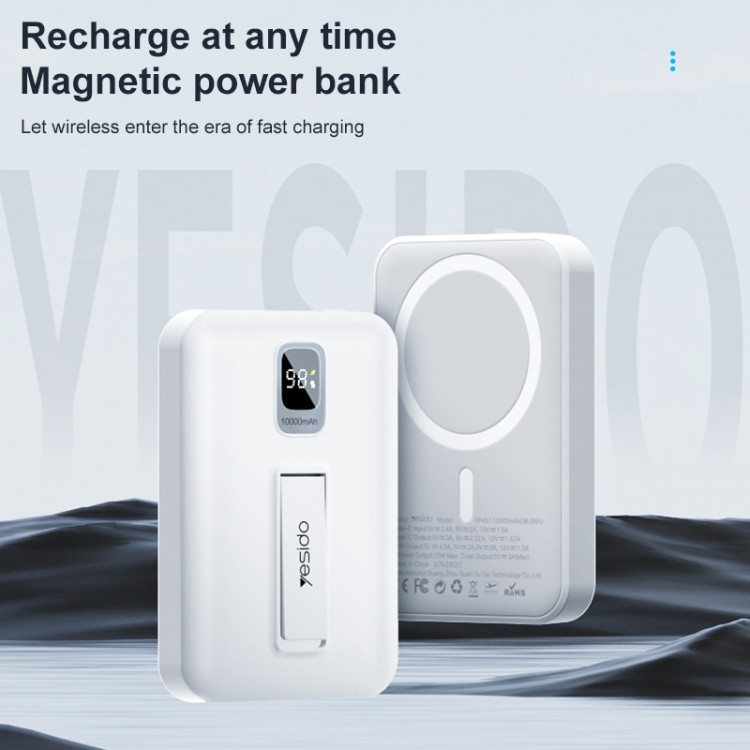 پاوربانک مگ سیف وایرلس یسیدو مدل YP45 محصولی از یسیدو است. توانخروجی شارژر این پاوربانک 15 وات استو به این صورت که میتواند در مدت زمان 40 دقیقه 50% از باتری گوشی شمارا شارژ نماید.ظرفیت باتری این محصول 10 هزار میلی آمپر است. برروی بدنه پاوربانک یک LCD تعبیه شده که نمایشگر میزان شارژ باقیمانده به صورت درصد شارژ است. برروی بدنه محصول یک پایه کوچک تعبیه شده که شما میتوانید از این پاوربانک مگنتی به صورت هلدر نگهدارنده گوشی در حین تماشای فیلم استفاده نمایید. پورت ورودی شارژر در این محصول تایپسی 5ولت و 2.4 آمپر است.خروجی پورت تایپسی 5 ولت و 3 آمپر است. خروجی پورت USB در این محصول 5 ولت و 4.5 آمپر است.