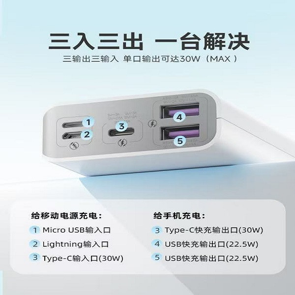 مشخصات فنی : توان ورودی پاوربانک: 5V-2A/9V-2A/5V-3A/9V-3A/12V-2.5A/15V-2A/20V-1.5A توان خروجی پاوربانک 5V-3A/9V-3A/12-2.5A/15V-2A/20V-1.5A/4.5V-5A/5V-4.5A/9V-2A/12V-1.5A