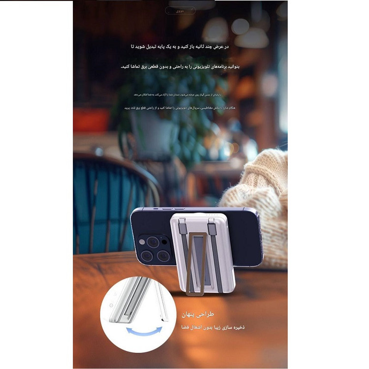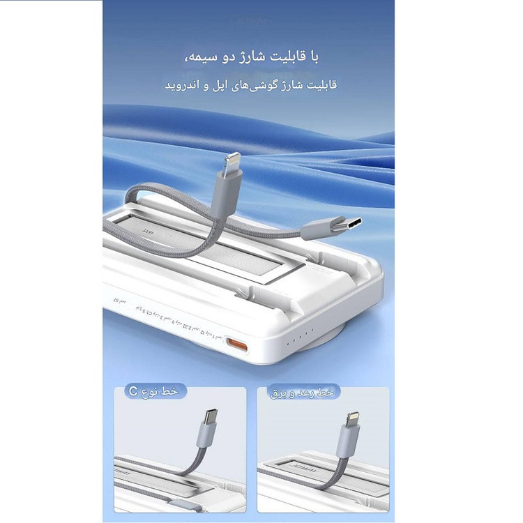 وجود مگنت قوی در بخش شارژ بیسیم، باعث اتصال پایدار گوشی در هنگام شارژ میشود. همچنین، طراحی خاص آن با یک هلدر نگهدارنده، تجربهای راحتتر را هنگام استفاده فراهم میکند. این محصول به همراه دو کابل لایتنینگ و تایپسی عرضه میشود و از باتری لیتیوم پلیمری با کیفیت بهره میبرد که ایمنی و دوام بالایی دارد.