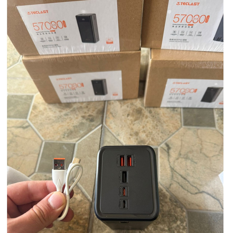 TECLAST A60 Pro یک پاوربانک با ظرفیت بالا است که دارای باتری قابل توجه ۵۷۰۰۰ میلیآمپر ساعتی است. این پاوربانک که برای شارژ سریع طراحی شده است، از طریق سه پورت USB و یک پورت Type-C، خروجی ۲۲.۵ وات ارائه میدهد. این پاوربانک از پروتکلهای مختلف شارژ سریع، از جمله QC3.0، PD3.0 و AFC پشتیبانی میکند و سازگاری با طیف وسیعی از دستگاهها را تضمین میکند. این پاوربانک با وزن ۱۲۲۳ گرم و ابعاد ۱۶۳ میلیمتر در ۷۷ میلیمتر در ۶۳ میلیمتر، قابل حمل و در عین حال قدرتمند است. این پاوربانک میتواند دستگاههای شما را با یک بار شارژ تا ۱۵ روز شارژ نگه دارد و آن را به یک لوازم جانبی ضروری برای تلفنهای همراه، تبلتها، دوربینها و موارد دیگر تبدیل میکند. یک صفحه نمایش LED وضعیت باتری را نشان میدهد و با یک کابل شارژ سریع Micro USB رایگان ارائه میشود.