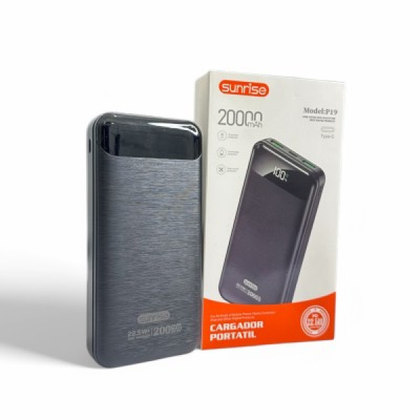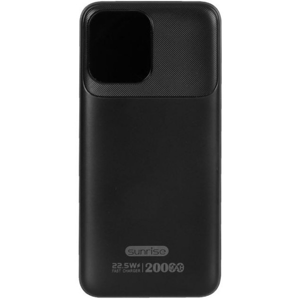 پاور بانک سانرایز مدل P21 ظرفیت باتری 20000 میلی آمپر ساعت قابلیت فست شارژ قابل حمل مناسب برای گوشی اندروید آیفون دارای صفحه نمایش