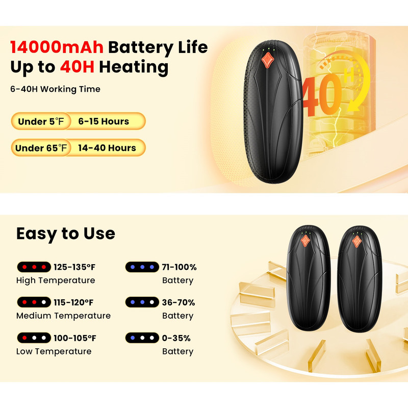 امکانات و قابلیت‌ها : قابلیت گرم شدن ظرفیت پاوربانک گرم کن دست : 2000 میلی آمپرساعت ، هر دو باهم 40000 میلی آمپرساعت ظرفیت باتری:استند ‎۱۰۰۰۰ میلی‌آمپر ساعت