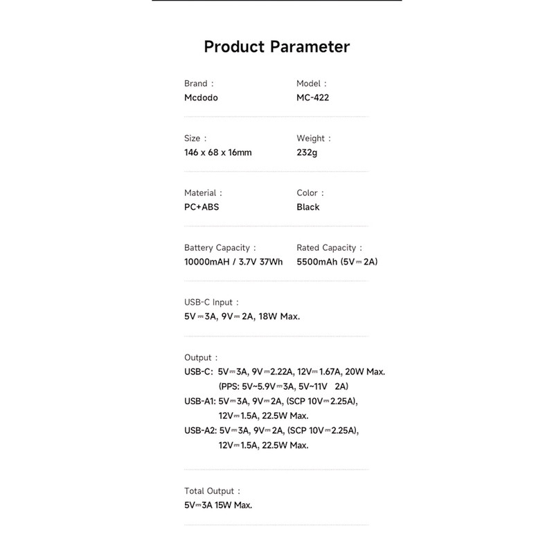 پاوربانک مک دودو مدل MC-4420 LED Display Version ظرفیت 10000 میلی آمپرساعت