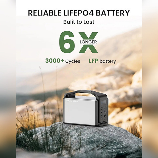 مشخصات فنیظرفیت (وات ساعت)۵۶۰ وات ساعت نوع باتری لیتیوم-یون فسفات LiFePO4 قدرت ۶۰۰ وات ولتاژ (خروجی) ۲۳۰ ولت