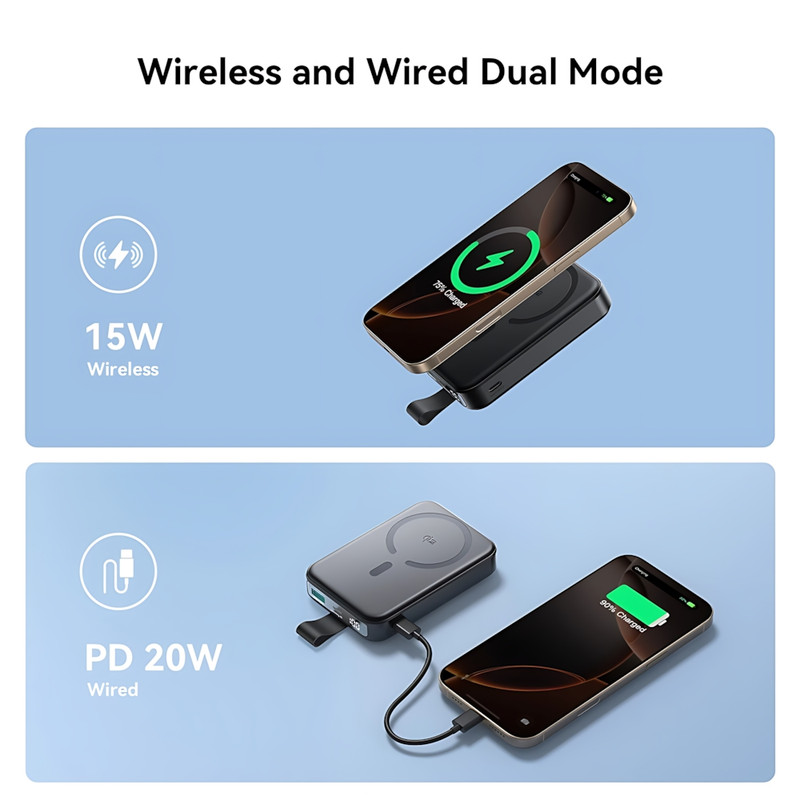 امکانات و قابلیت‌ها : دارای قابلیت شارژ وایرلس | ظرفیت 10000 میلی آمپر ساعت | توان خروجی وایرلس: 15W | خروجی تایپ سی: PD 20W | خروجی یو اس بی: 22.5W | قابلیت تبدیل شدن به استند | محصول اورجینال جوی روم واردات انحصاری تیم تکنیک تل | شارژ ایمن با حفاظت چندگانه