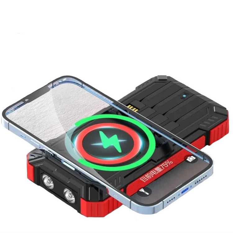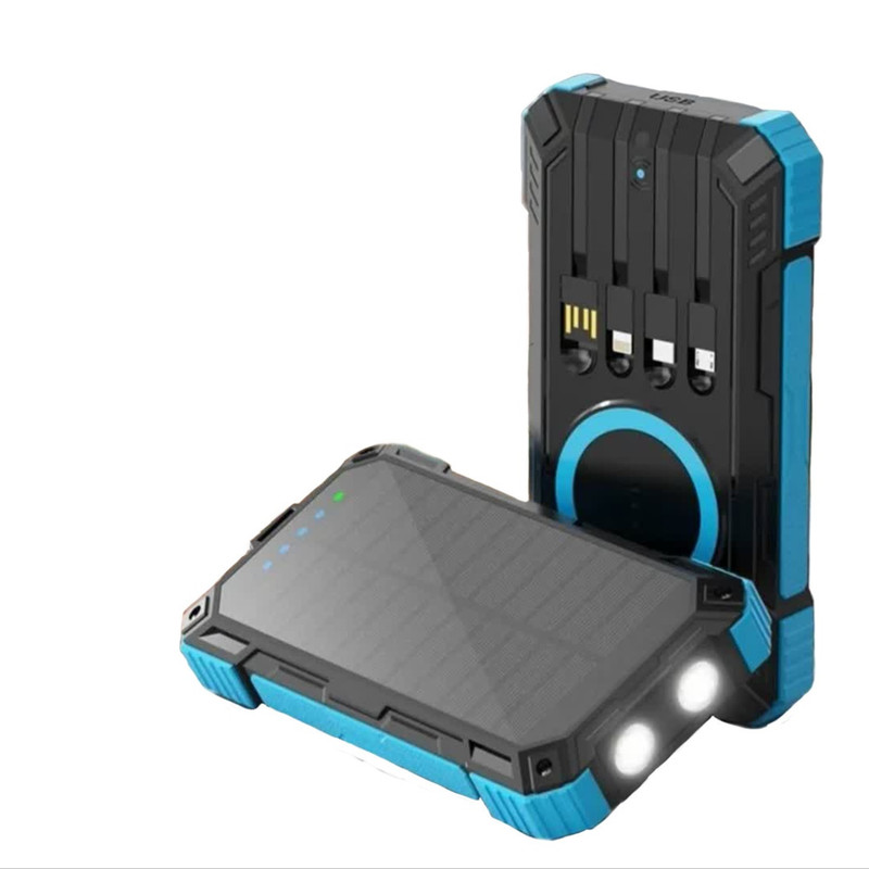 پاور بانک خورشیدی 20000 mAh ، شارژسریع وایرلس وارد و دارای ۴ نوع کابل متصل برای شارژ و ۵ نوع خروجی است.