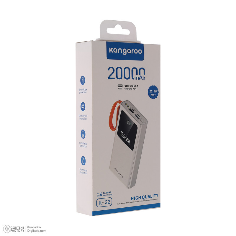پاوربانک کانگورو مدل K-22 ظرفیت 20000 میلیآمپر ساعت