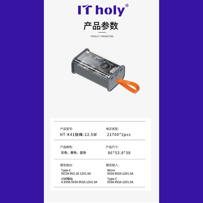 پاور بانک P106 از سری پاور بانک های پرقدرت و فست شارژ برند IT holy با توان خروجی 22.5W (وات) می باشد . ظرفیت این پاور بانک 10000mAh (میلی آمپر ساعت) است و سایز مناسب آن باعث شده جا به جایی و حمل راحت تری نسبت به سایر برند ها داشته باشد . پاور بانک IT holy P106 گوشی و تبلت شما را در سریع ترین حالت ممکن شارژ می کند و درصد شارژ پاور بانک روی LED که روی پاور بانک تعبیه شده نشان داده می شود . این پاور بانک از دو خروجی ، یکی USB-A با قابلیت QC 3.1 و دیگری USB-C با قابلیت PD که هر دو شدت جریان 3.1A (آمپر) ولتاژ 5V (ولت) را از خود خارج می کند ، بهره می برد . همچنین پاور بانک P106 دارای ورودی های micro و USB-C می باشد . پاور بانک IT holy مدل P106 سازگاری، مقرون به صرفه، در هر زمان و هر مکان برای شارژ دستگاه شما دارد . این پاور بانک بسیار بادوام برای استفاده می باشد . عالی، ایمن و کاربردی است، به خصوص زمانی که در سفر هستید . بسیار فوق العاده ، سازگار با بیش از 99٪ تلفن های همراه، رایانه های لوحی، بلوتوث بلندگوها و سایر محصولات دیجیتال و بسیار راحت و محافظ محیط زیست است .