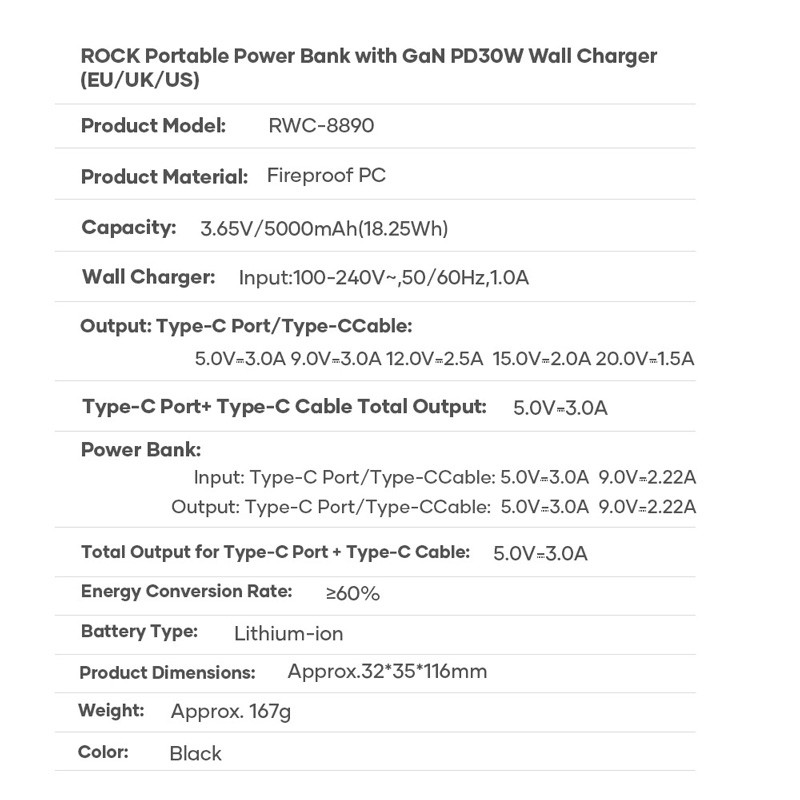 پاوربانک راک مدل RWC-8890 ظرفیت 5000 میلی آمپر ساعت