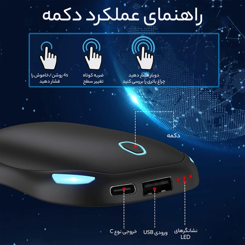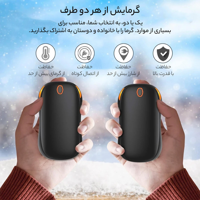 دست گرم کننده های قابل شارژ و پاور بانک 2 در 1: این نه تنها گرم کننده دست است بلکه یک باتری پشتیبان اضطراری نیز می باشد. در حین ورزش در فضای باز، شکار، ماهیگیری، پیاده روی، کمپینگ، اسکی یا پیاده روی به راحتی می توانید آن را به هر جایی که دوست دارید حمل کنید یا در هر جیب یا کیفی قرار دهید.