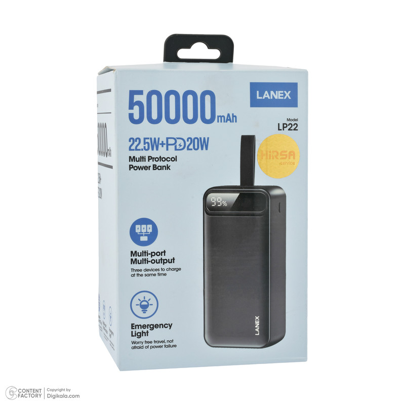 پاوربانک لانکس مدل LP22 ظرفیت 50000 میلی آمپر ساعت