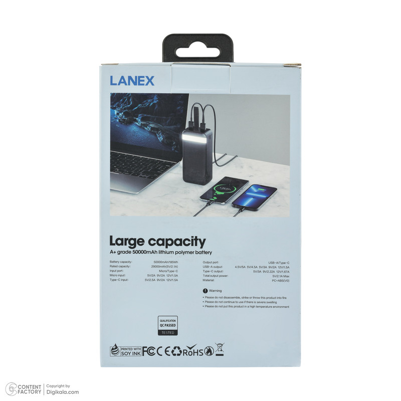 پاوربانک لانکس مدل LP22 ظرفیت 50000 میلی آمپر ساعت
