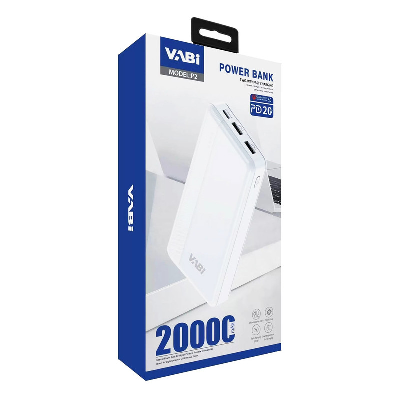 پاوربانک وابی مدل P2 با ظرفیت 20000mAh و توان خروجی 22.5 وات قادر است دستگاه های هوشمند مختلف مثل تلفن همراه، دوربین و تبلت را چندین بار شارژ کند. بعد از اتمام شارژ پاور بانک، با شارژ دوباره می تواند دستگاه های مورد نظر را شارژ نماید. این محصول دارای 3 پورت (پورت USB-A، پورت Type-C و پورت Micro) بوده و می تواند به دستگاه های سازگار متصل شده و آنها را شارژ نماید. تکنولوژی PD (پاور دلیوری) سبب افزایش سرعت شارژ دستگاه هوشمند می شود. این پاور بانک می تواند با استفاده از این تکنولوژی سبب بالا رفتن سرعت شارژ شود. تکنولوژی کوالکام (یا همان Qualcomm Quick Charge) نسل جدیدی از تکنولوژی شارژ سریع باتری است که تاثیر مثبتی بر حفظ باتری و انرژی برق دارد. با استفاده از این تکنولوژی، میزان ولتاژ برق زیادی در هنگام اتصال به شارژر به دستگاه می رسد. بنابرین از هدر رفتن انرژی جلوگیری شده و شارژ باتری دستگاه هوشمند در مدت زمان کمتری انجام خواهد شد. همینطور این تکنولوژی در حفظ سلامت باتری اثرات مثبتی همچون کنترل افزایش دما و پیشگیری از داغ شدن کابل داخلی دارد. لازم به ذکر است که این محصول دارای حسگر حرارتی پیشرفته نیز می باشد. بر روی پاور بانک چند عدد چراغ LED وجود دارد که بیانگر میزان شارژ باقیمانده پاوربانک می باشد.