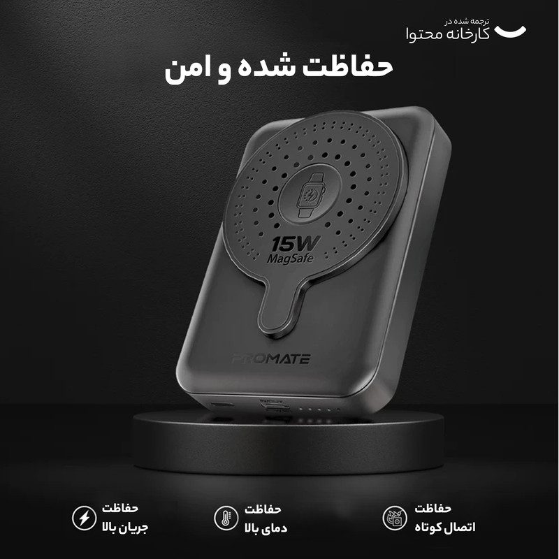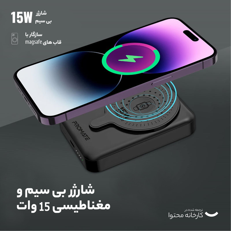 شارژر بی سیم پرومیت مدل POWERMAG-DUO.BLACK با باتری داخلی 10000 میلی آمپر ساعت