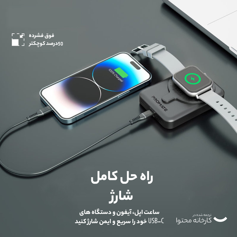 با PowerMag-Duo شارژ بیسیم آیفون و اپل واچ خود را در بالاترین سرعت انجام دهید. این دستگاه دارای یک ماژول شارژ بیسیم 15 وات با پشتیبانی از فناوری MagSafe است که به طور کامل با آیفونهای شما سازگاری دارد و برای شارژ سریع و ایمن مناسب است. در این محصول، صفحه شارژ مغناطیسی اپل واچ قرار داده شده که با اپل واچ شما به طور کامل هماهنگ میشود و دستگاههای شما را در حالت حرکت با توان ایدهآل 3 وات شارژ میکند. پورتهای USB-C با توان خروجی 20 وات و پشتیبانی از فناوری Power Delivery به شما کمک میکنند، دستگاههای USB-C خود را تا 4 برابر سریعتر شارژ کنید. طراحی قابل حمل و سبک وزن PowerMag-Duo به شما این امکان را میدهد که دستگاه خود را در هر مکانی شارژ کنید.