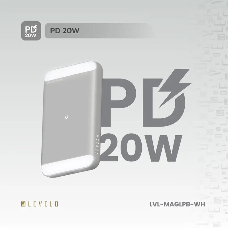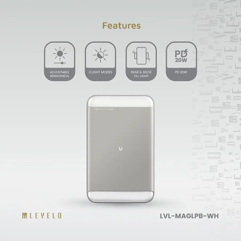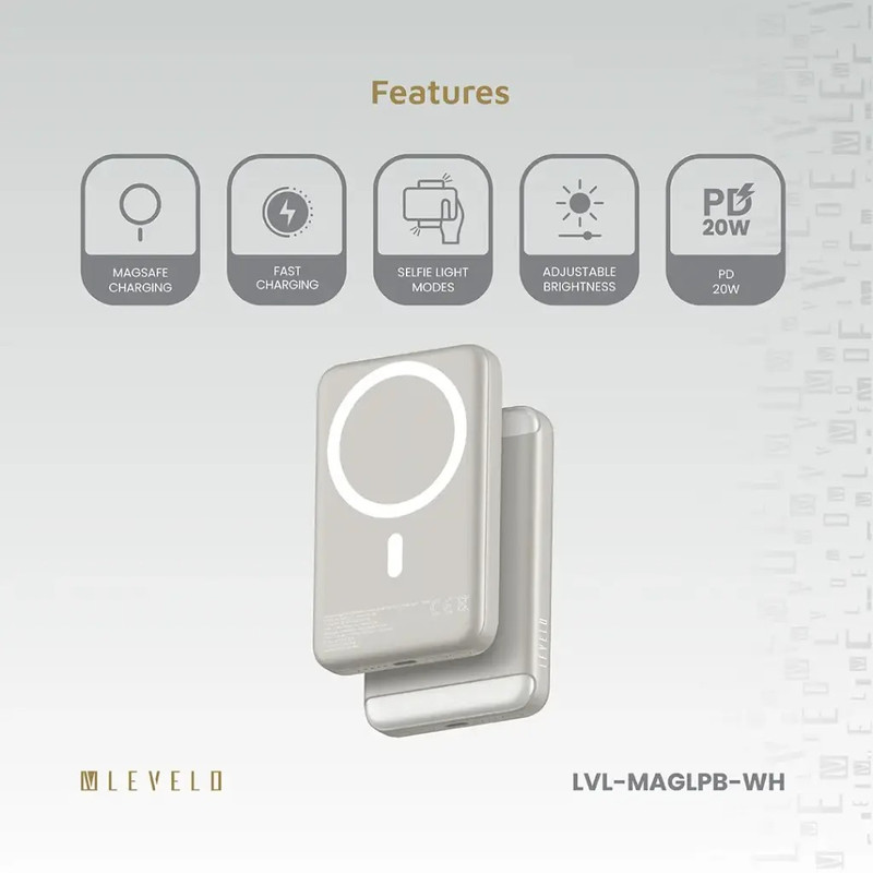 پاوربانک قابل حمل Levelo MagLight یک راهکار خلاقانه و چند منظوره برای رفع نیازهای شارژ و نورپردازی در حین حرکت ارائه میدهد. امکان شارژ سریع با توان ۲۰ وات، تمام دستگاه های شما را به طور کارآمد شارژ میکند، در حالی که این پاوربانک ۸۰۰۰ میلی آمپر ساعتی از خروجی های Type-C با تنظیمات ۵ ولت/۳ آمپر، ۹ ولت/۲.۲۲ آمپر و ۱۲ ولت/۱.۶۷ آمپر پشتیبانی میکند. سازگاری با فناوری MagSafe امکان شارژ بیسیم تا ۵ وات، ۷.۵ وات، ۱۰ وات یا ۱۵ وات را فراهم میکند. این دستگاه همچنین مجهز به یک چراغ LED با حداکثر توان ۲ وات و نوردهی ۶۰۰ لومن است. سه حالت نور متفاوت در آن وجود دارد: نور سرد، نور ترکیبی سرد-گرم و نور گرم. تمام این حالات امکان تنظیم میزان روشنایی را بر اساس نیاز کاربر فراهم میکنند، چه برای سلفی و چه برای نورپردازی محیطی. طراحی جمع و جور و چند کاربرده آن، این پاوربانک را به یک نور سلفی یا نور پس زمینه تبدیل میکند که برای عکاسی، کمپینگ یا استفاده روزمره ایدئال است. Levelo MagLight سهولت استفاده، قدرت شارژ و نورپردازی را در یک محصول واحد ترکیب کرده است.