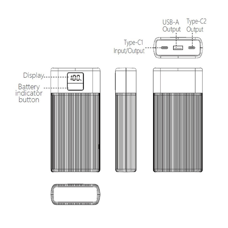 مشخصات فنیدرگاه Type-C1/C2 حالت ورودی: 5 ولت 3 آمپر / 9 ولت 2 آمپر / 12 ولت 1.5 آمپر / درگاه Type-C1/C2 حالت خروجی: 5 ولت 3 آمپر / 9 ولت 2.22 آمپر / 12 ولت 1.67 آمپر / درگاه USB-A حالت خروجی: 5 ولت 2.4 آمپر / 9 ولت 2 آمپر / 12 ولت 1.5 آمپر