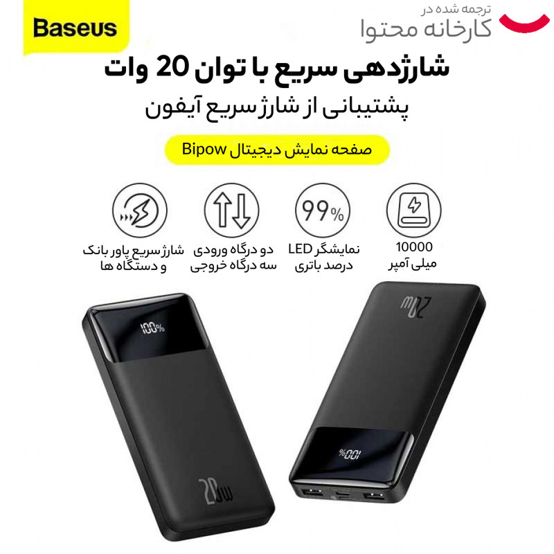 پاوربانک باسئوس مدل Bipow PPDML-20W ظرفیت 10000 میلی آمپر ساعت