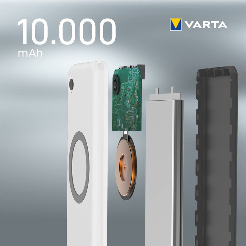 پاوربانکهای بیسیم 1 در 2 وارتا در سه ظرفیت 10000 تا 20000 به بازار عرضه شدهاند تا پاسخگوی نیاز مخاطبان خود باشند. محصول پیش رو دارای 10000 ظرفیت میباشد که از شارژر بیسیم 10 واتی پشتیبانی میکند. پاوربانک بیسیم وارتا میتواند نیرو و شارژ مورد نیاز برای پشتیانی شارژ فوقالعاده سریع و هوشمند با حداکثر 20 وات باشد.یکی از مهمترین ویژگیهای پاوربانک وایرلس فست شارژ وارتا، فناروی ایمنی پیشرفته و شارژ عبوری در حین حرکت است که این پاروبانکها را به منبع انرژی عالی و مستقل برای شارژدهی تبدیل کرده است. علاوه بر این چیپستهای بکار رفته در این گجت، امنیت فرایند شارژ بیسیم را تضمین میکنند. این بدین معناست که دستگاه شما در برابر شارژ بیش از حد، دشارژ شدن و آسیب دیدگی به دلیل دمای بالا حفاظت میشود.این پاوربانک در کنار سرعت بالای شارژدهی به یک پد شارژ بیسیم نیز مجهز میباشد که با قدرت شارژ 10وات، به نسبت پدهای شارژ معمولی سرعت بالاتری دارد.